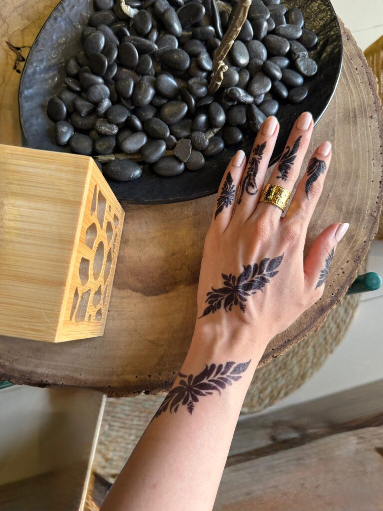 These are waterproof but you should avoid vigorous rubbing/scrubbing of hands, very hot water showers and contact with harsh chemicals as that might result in peeling of the henna tattoo. Avoid using moisturiser before using or on the tattoos.
